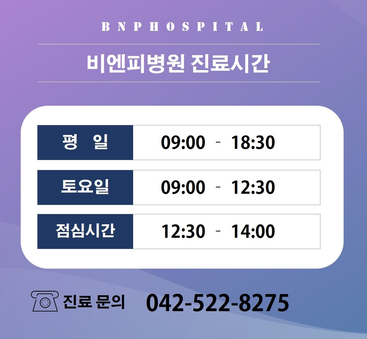 비엔피병원의 진료시간, 점심시간을 미리 확인하세요.