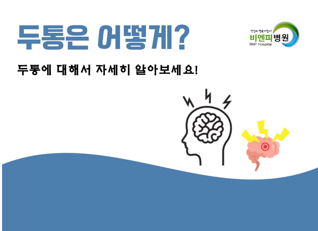 대전 두통 병원 흔하게 나타날 수 있지만 지속 된다면 검진 중요 안녕하세요.비엔피병원입니다. 두통은 머리에 발생하는 다양한 통증을 의미합니다.전체 약90%이상이 경험할 수 있는 증상입니다. 두통은 원인이 다양하기 때문에 지속 된다면원인을 찾아서 치료가 중요합니다. 대전 두통 병원, 검사 및 진료가 가능한 비엔피병원입니다. 유성온천역 5번출구 방면에 위치하고 있습니다.맥도날드 대전유성DT점 옆에 위치하고 있습니다. 비엔피병원의 단독건물을 확인하세요. 주창의 경우 병원의 뒷편, 옥외 주차장을 이용하세요. 비엔피병원의 진료시간, 점심시간을 미리 확인하세요.일요일, 공휴일은 휴진입니다. 진료접수 마감시간은 월~금 18시, 토요일은 12시입니다...