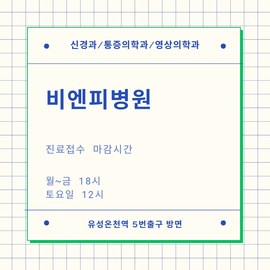 어지럼증 검사 및 진료가 가능한 비엔피병원입니다.